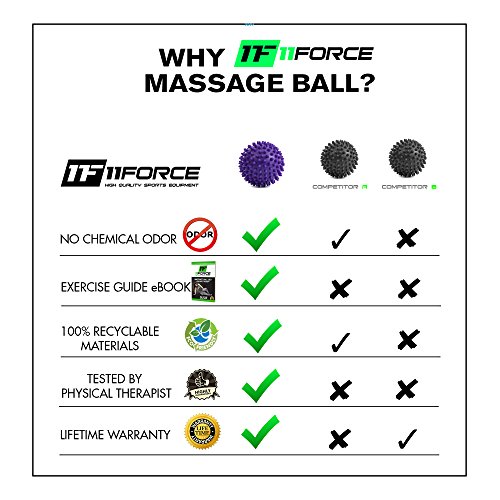 Premium Therapy Massage Balls by 11FORCE, Best for Physical Therapy Equipment Lacrosse & Spiky Ball, Plantar Fasciitis Tools, Myofascial Release, Foot Relief Trigger Points, Set or Single, FREE EBOOK