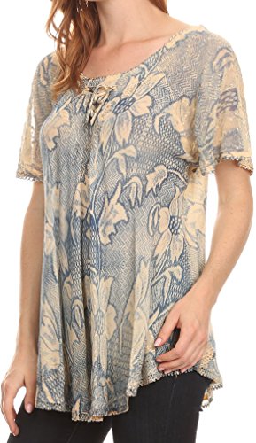 -. Feature : One Size Regular: [(Fits Approximate Top Size: US 0-12, EU 34-44, UK 6-16) Max bust size: 40 inches (101.6cm), Length: 28 inches (71.1cm)]. / Approximate Length = 28 inches (71.1cm) measured shoulder to hem. / This blouse has a very beautiful and elegant drape to it! The fabric is semi opaque, and has embroidery lace cap sleeves, and a corset style neck enclosure at center front that is fully adjustable. This blouse is really soft and flowy. The sleeves are wide and a good length. This blouse has embroidery at the hems, and a beautiful floral printed design throughout the bodice of the blouse. / You can wear this blouse with pretty much anything! We sest styling with your favorite pair of pants or bot, and wearing with your favorite shoes or sandals! Can be dressed up or down as desired, and can be layered for cooler weather! / Hand wash separately in cold water. Line dry. Imported. | Material: 100% Cotton.