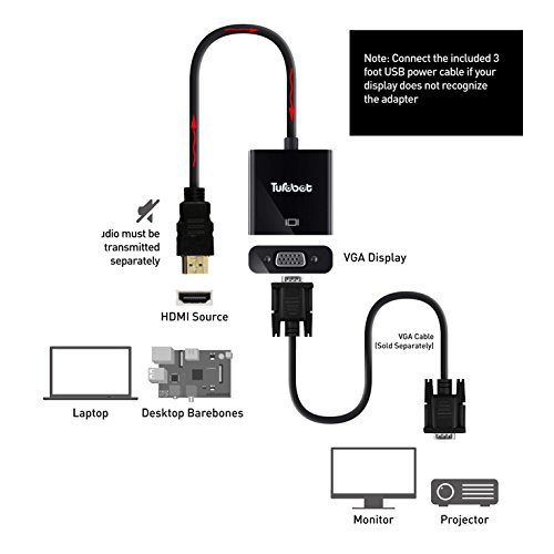 HDMI to VGA, Turobot 1080P Gold-Plated HDMI Male to VGA Female Video Converter Adapter Cable For PC Laptop HDTV Projectors and other HDMI input devices