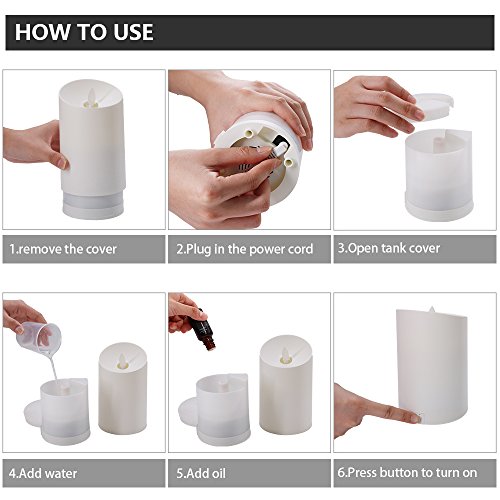 ✔ Diffuser & Humidifier: Adding several drops of oils into it, it will fill your space with lovely fragrance to make your life beautiful and healthy. Some special oils can create therapeutic benefits. You can also use it as a humidifier without oils to add more moisture to the air-conditioner room.