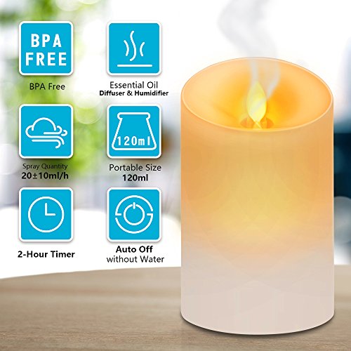 Essential Oil Diffuser, Hysure 120ml Ultrasonic Cool Mist Humidifier with Candle Light Waterless Auto Shut-off for Office Home Bedroom Living Room Study Yoga Spa