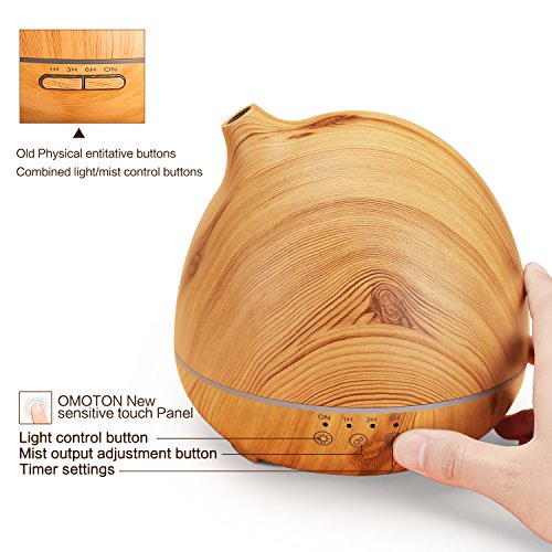 OMOTON 400ML Aromatherapy Essential Oil Diffuser - with Upgraded Touch Panel 7 Colors LED Lights for Home Office Study Yoga Spa, Light
