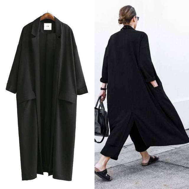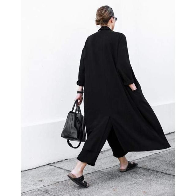 トレンド バックスリット 七分袖 ガウンコート 薄手 ロング丈 スリム スタイリッシュ 秋冬 上品 エレガント ワンサイズ