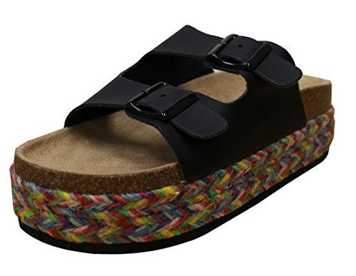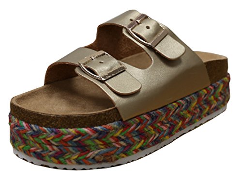 Nature Breeze Women's Hippie Boho Festival Flatform Two Strap Sandal