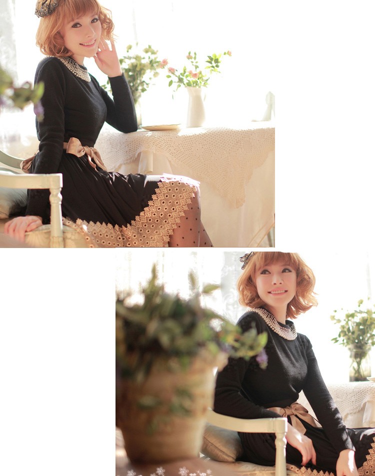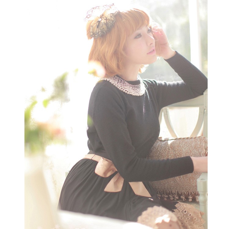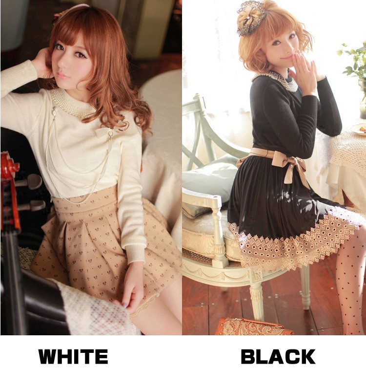 『決算セール在庫限りのみ』『メール便送料無料』フェミニンムード満点なパール付きニット ニット レディース パール付き(ブラック・ホワイト)『セール品のため交換返品不可、メール便発送のため、日時指定不可』