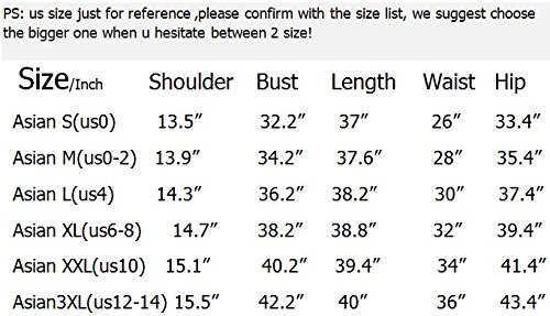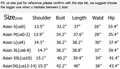 Asian S=US0,M=US0-2,L=US4,XL=US6-8,XXL=US10,XXXL=US12-14. Suggest To Choose Bigger One If U Hesitate Between 2 Size!