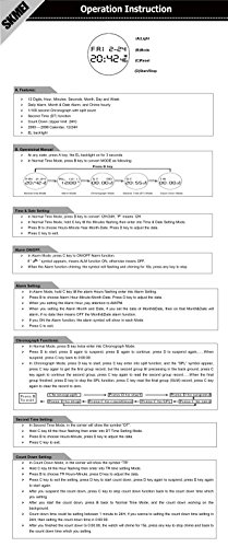 MULTIFUNCTION WATCH FOR DAILY USE: 12/24 hour format, alarm clock, 1/100 second stopwatch, Green EL backlight, hourly Chime, Dual timezone display, Month Date Day Calendar , count down(WEEK DAY IS AUTOMATICALLY CALCULATED ACCORDING TO YEAR-MONTH-DATE SETTING)