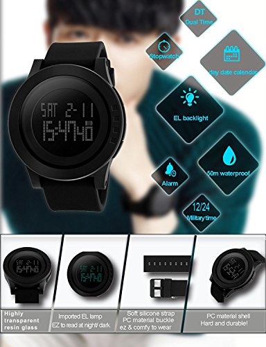 COMFORTABLE DAILY WEARING & STYLISH DESIGN:Silicon watch straps brings you super soft, flexible and durable experience; big face, stylish minimalism black design makes the digital sports watch blend for any occasion