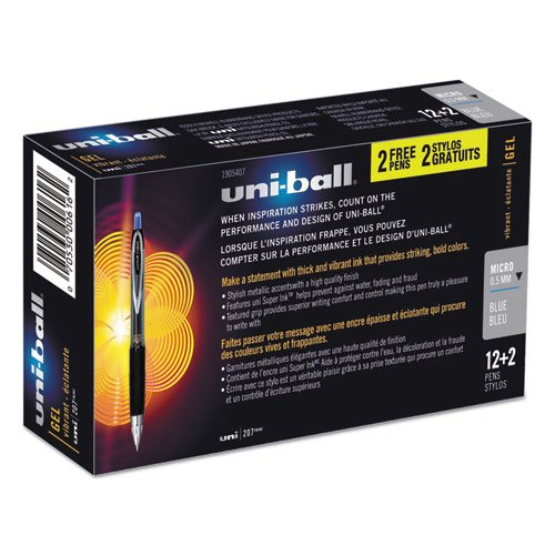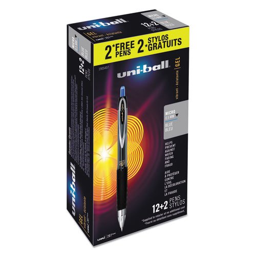 -. Title : Signo Gel 207 Roller Ball Retractable Gel Pen, Blue Ink, Micro, 14 per Box