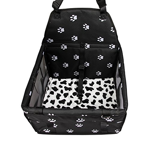 Notice:According to the feedback from customers,we have changed the side panels to much stronger,it will not easily to folded,Treat your dog to the better life! This pet car seat is a perfect choice for anyone who travels with their pet, and want to provide a safe and comfortable place for their pet on journeys in the car. Specification: Material: Oxford cloth, PVC, antirust D ring and nylon belt Size: 40 x 30 x 25cm/15.75 x 11.81 x 9.84inch Net Weight: 800g - 900g/1.76pound - 1.98pound Suitable for less than 11 pound/ 5KG pet. Package included:1 * black pet seat,1 * black and white fleece throw blanket About functions 1.waterproof oxford, these cat and dog seat covers for cars are the ultimate guard against pet stains, mud, water and dirt. Keep your fabric or leather car seats perfectly clean while enjoying a stress-free ride with your pet. 2.Front zipper pocket allows easy storage for your dog accessories. 3.Collapsible design allows for easy storage. 4.One safety belt to wear pet collar or back chest clothes, give your pet safe protection. 5.Can be install in front passenger seat and back seat has the head pillow. 6.Easy to install in under minutes. 100% Lifetime Guarantee - We want Raving Fans! If you have ANY issues please CONTACT US immediately. 0