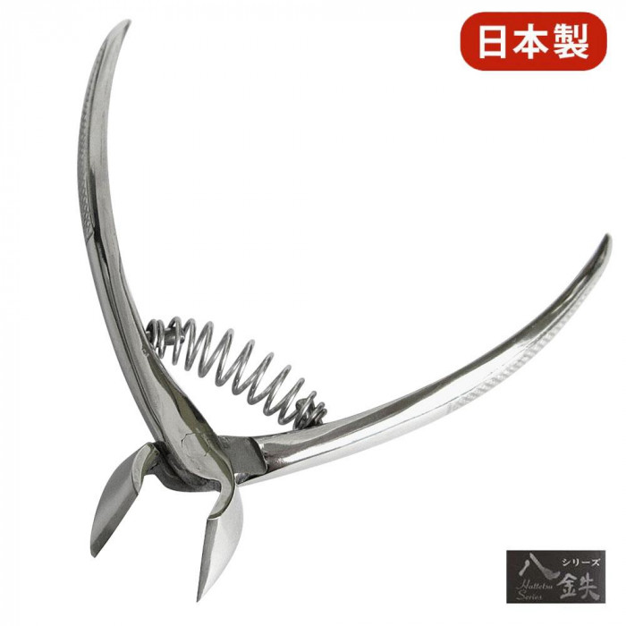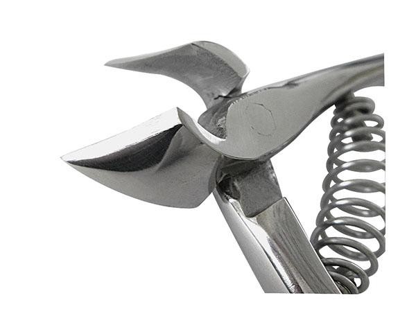 日本の熟練の職人が1本1本刃先を丹念に仕上げました。食い切りという刃先の形状で爪に対し正面から刃先をあてがう事により、確実に爪をキャッチし、簡単に切ることができます。角度を自由にできるため手の爪にも最適な形状です。また、刃の幅を長めに設定し、手前と先端の両方でカットできるため、足の爪なども手を伸ばさなくても使いやすい仕様です。 |