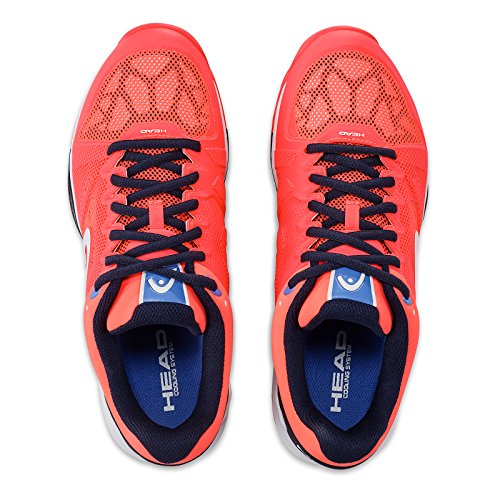 Studio : HEAD Publisher : HEAD Binding : Apparel Product Description Heat up the tennis court with new HEAD Women`s Revolt Pro 2.5 Tennis Shoes in Coral and Black Iris! This new member of the Revolt Pro family is premium for players seeking a performance shoe with an exceptional mix of cushioning and secure support. This all-court shoe has innovative technologies such as an Energy Frame, Integrated TPU and 4D Shell offering a secure fit that locks your foot in place and prevents ankle rolling or other injuries. Drift Defense technology provides additional protection around the toe and medial area, making these a great option for players that like to drag their feet on shots. Tri-NRG dampening foam inserts also add comfort at the heel and ball of the foot. The 4D Shell breathable mesh upper, and new EVA tongue allows maximum air flow so you won`t sweat or slide, even during the most intense matches. 6-month outsole durability guarantee! 0
