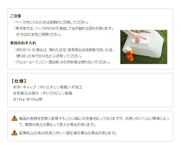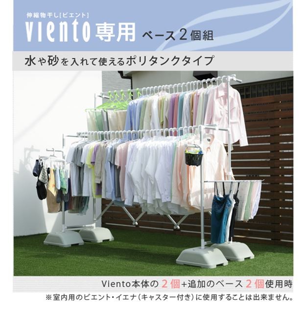 アルミ伸縮物干しシリーズ「ビエント・ソラ(ワイド・レギュラー)」の追加ブローベース2個セットです。物干しをしっかり固定できるので、風の強い場所でも安定感がアップします。ブローベースには、水14kg、砂15kgを入れることができます。
