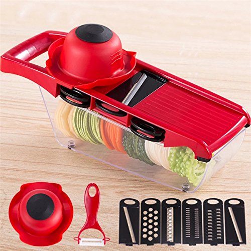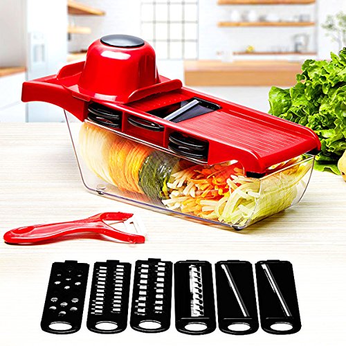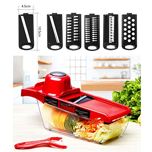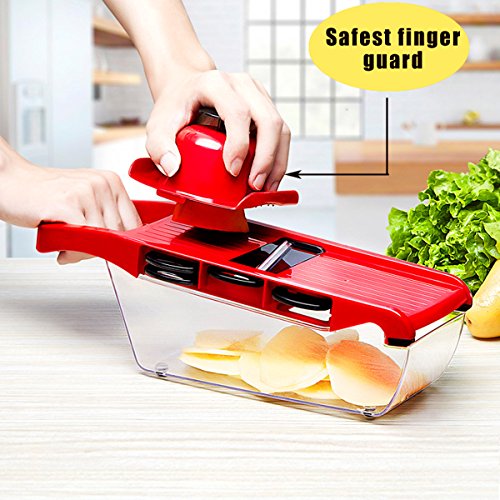 Muiigood Mandoline Vegetable Slicer,Food Cutter Fruit Chopper Granulator - 6 Adjustable Interchangeable Blades with Peeler,Hand Protector,Container for Tomato Potato Carrot Onion Cucumber Cheese