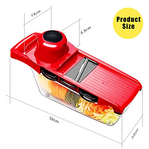 2.Multiple Blades For Multi-Purpose -- 6 different interchangeable stainless steel blades include 1.5mm&2.5mm Slicer, 3mm&4mm Julienne, Grater, Wavy Slicer.It can meet all your need of Cutting, Slicing, and Chopping.You can cut the vegetables in any shape and thickness you want, ,make your dishes interesting.