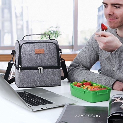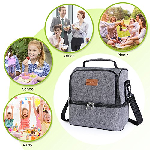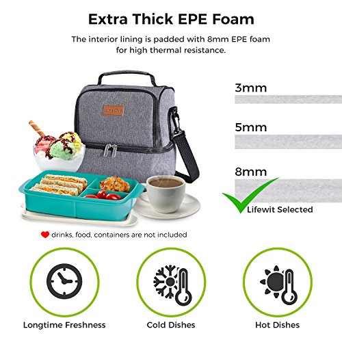 -. Title : Lifewit Double Decker Lunch Box for Men Women Kids, Insulated Thermal Bento Bag, Double Section Baby Milk Bottle Bag, 7L