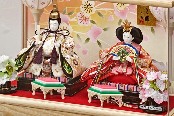 ・親御様、お子様、縁者様の健康と発展を願いながら職人が丁寧に仕上げた雛人形飾り/雛人形が初節句のお祝いにはなを添えます。