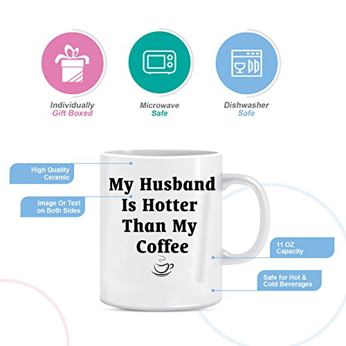 UNIQUE & FUNNY DESIGN: ''My Husband Is Hotter Than My Coffee'' For women: Show everybody your passion & love to your husband. For men: Just a funny gift to your wife ;)