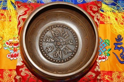 Product Description This singing was picked by one of my best friend in Kathmandu Nepal. This is one of a kind singing bowl with not just the great sound but the design and everything. I try to carry bowl with meaningful designs. This bowl has OM MANI PADME HUM design around the bowl and has raised design inside the bowl as pictured. It measures 3 inches deep and 5.5 inches diameter and weighs over 2 pounds. This bowl comes with a silk cushion and a mallot wrapped in leather. The quality of our items are always 100% guaranteed. The mantra OM MANI PADME HUM on the bowl is the mantra of Avalokteshwara the Buddha of Compassion. It means HAIL TO THE JEWEL IN THE LOTUS. Mani means jewel and padma means lotus. Singing bowls (also known as Tibetan Prayer Bowls, 'Himalayan bowls' or 'rin gongs' in Japan) are type of musical instrument classified as a standing bell. Rather than hanging inverted or attached to a handle, standing bells sit with the bottom surface resting. The sides and rim of the bell vibrate to produce sound. Singing bowls were traditionally used throughout Asia as part of Buddhist, Bon and shamanic meditation practice. Today they are used worldwide for meditation, relaxation, healthcare and religious practice. In Buddhist practice, singing bowls are used as a support for meditation and prayer. Singing bowls are played by striking with a soft mallet to produce a warm bell tone and (in the case of genuine antiques) harmonic overtones. They may also be played by the friction of rubbing a wooden mallet around the rim of the bowl to produce overtones. 0