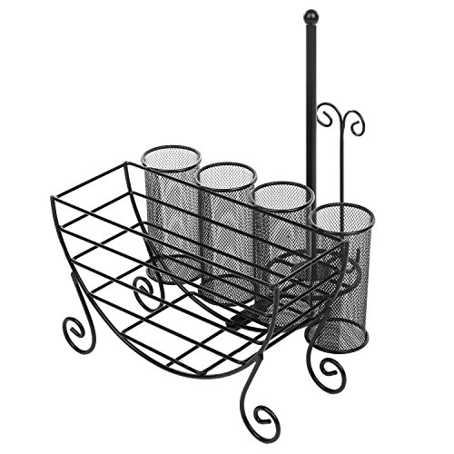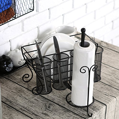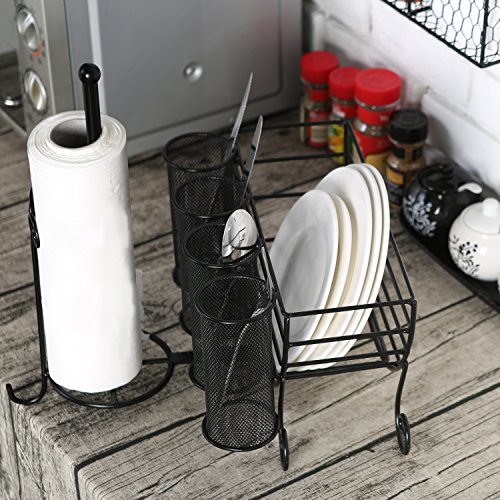 All-in-One Metal Kitchen Storage Caddy with Paper Towel Dispenser, Utensil Holder and Dish Rack
