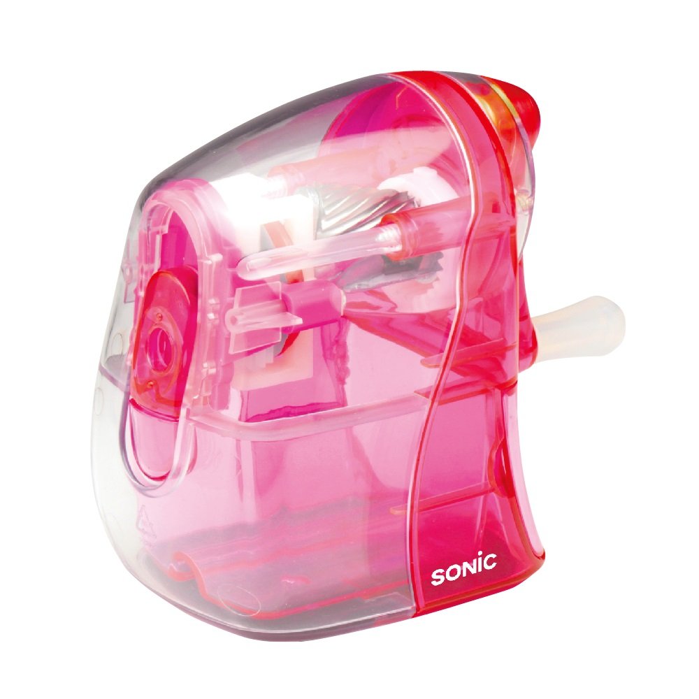 小さなお子様でも安心!従来の1/2の力で削れます。 リビング学習に最適!誤って落としてもゴミがこぼれない安心ロック付! 鉛筆は差し込むだけの簡単操作。指を挟む心配もありません。 安全な鈍角仕上げで芯が折れにくく、経済的! スケルトンボディなので内部のイロイロなギミックを楽しめます。