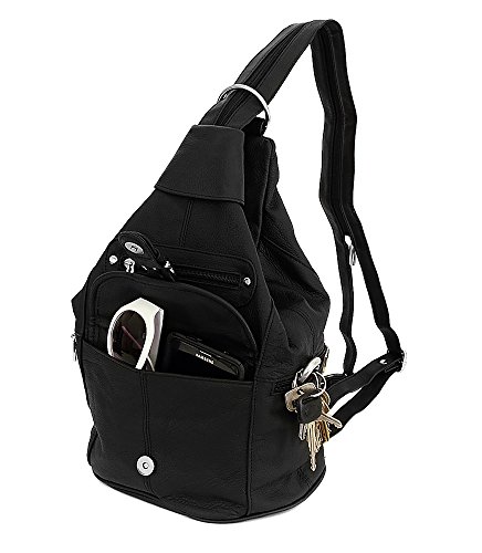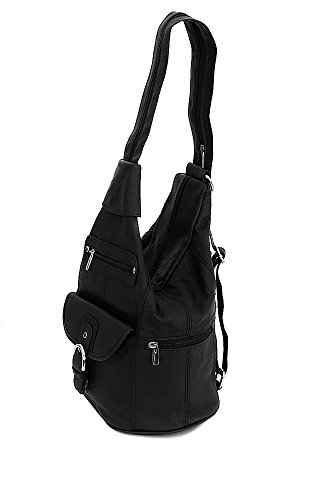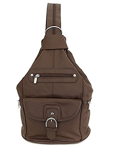 -. Title : Womens Leather Convertible 7 Pocket Medium Size Tear Drop Sling Backpack Purse Shoulder Bag