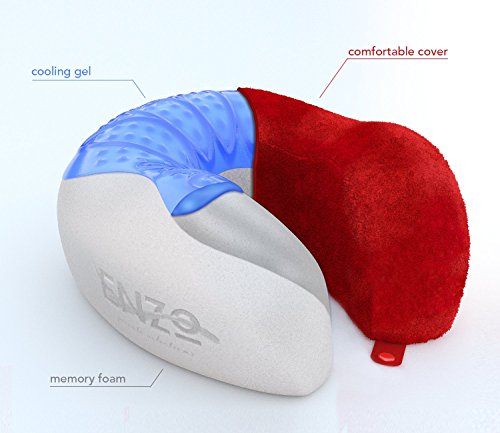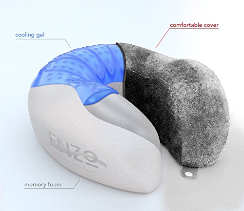 -. Brand : Enzo's Private Selection -. Feature : UNIQUE DESIGN - Offers maximum lower neck support with centre spine; Quality Cervical neck support; Button lock holds it in place; ideal for home, car, office or plane. 10% of all earnings in profit will be donated to raise awareness about GLOBAL WARMING by partnering up with World Wildlife Organization. All proceedings will go to its 'ADOPT A POLAR BEAR' program, saving polar bears from losing their natural habitat. / COOLING GEL LUMBAR SUPPORT - Prevents Excess Heat, reduces neck pain and muscle tension while travelling with this Pillow. We use thin layer A grade of cooling gel. Our cooling gel is highly absorbent preventing your neck from getting overheated and the thin layer allows you to feel the full comfort of memory foam without feeling like sleeping on liquid. / PREMIUM QUALITY, A GRADE, MEMORY FOAM - incomparable to inflatable and bead pillows, the Viscoelastic material is designed to rebound slowly and conform to pressure exerted against it. Perfect Rebound Time for Quality Memory Foam is 3-5 seconds. Our Premium 4.5D Memory Comfort Neck Pillow averaged at 3 seconds (best score for memory foam). / NON TOXIC, HYPOALLERGENIC, EASY TO CARRY, this super soft memory foam pillow folds down smaller than an average / MONEY BACK GUARANTEE & 2 YEARS WARRANTY - The hard part about buying a travel pillow is that there is no scientific way to predict whether or not a certain density will be right for you. That's why we have a no-questions ask money back guarantee policy, so if you feels like the pillow is not quite right for you we are happy to refund you in full. -. HazardousMaterialType : Unknown -. Label : Enzo's Private Selection -. Manufacturer : Enzo's Private Selection -. PackageQuantity : 1 -. ProductGroup : Home -. ProductTypeName : HOME_BED_AND_BATH -. Publisher : Enzo's Private Selection -. Size : Fits in Bag: Width: 6.3" Height: 10.6" :::: Pillow Size - Width: 11.8" Height: 4.7" -. Studio : Enzo's Private Selection -. Title : Enzo Travel Neck Pillow - Memory Foam Cooling Gel Technology and Washable Cover Packed in Small Bag for Air, Bus and Car Travels
