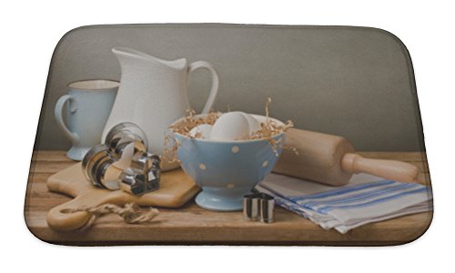 Gear New Still Life with White Eggs on Wooden Table Bath Rug Mat No Slip Microfiber Memory Foam