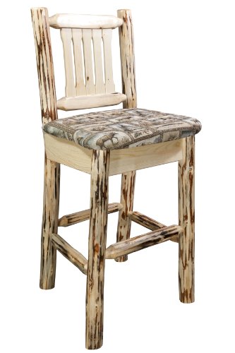 -. Title : Montana Woodworks Montana Collection Barstool with Back and Wildlife Pattern Upholstered Seat
