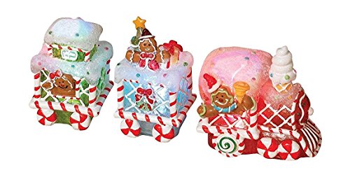 THE GERSON COMPANY 3 PIECE BATTERY OPERATED LIGHTED RESIN GINGERBREAD HOLIDAY TRAIN