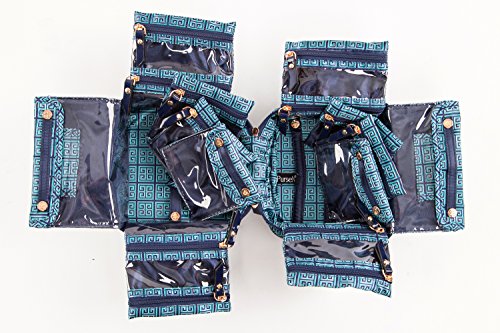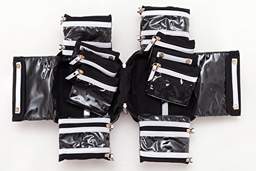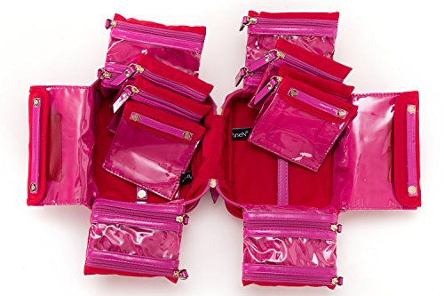-. Feature : Padded ring strap. Clear view windows. Necklace holders. / Removable pouches with middle straps to secure pouches. / Weekender 3.5"H x 4.5"W x 4"D / Expandable zipper bottom to accommodate larger jewelry. / Side built-In pockets. Single end built-in pockets.