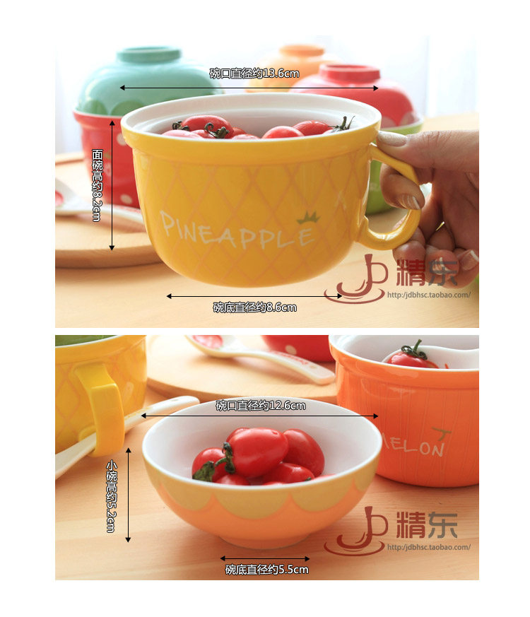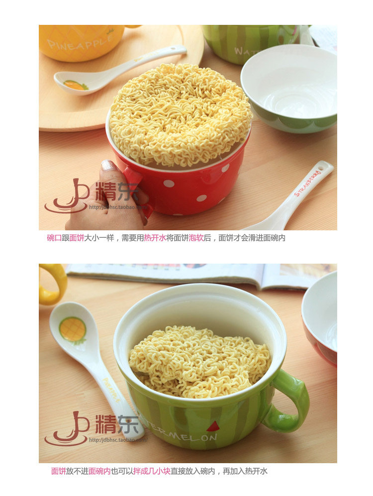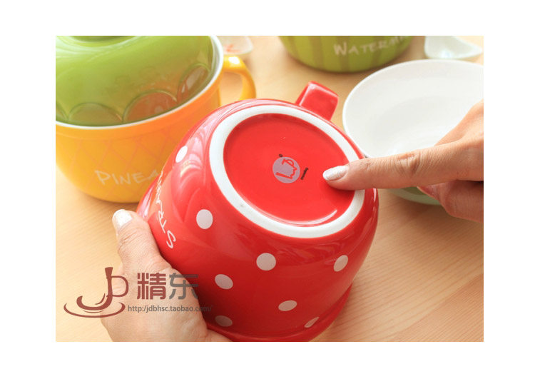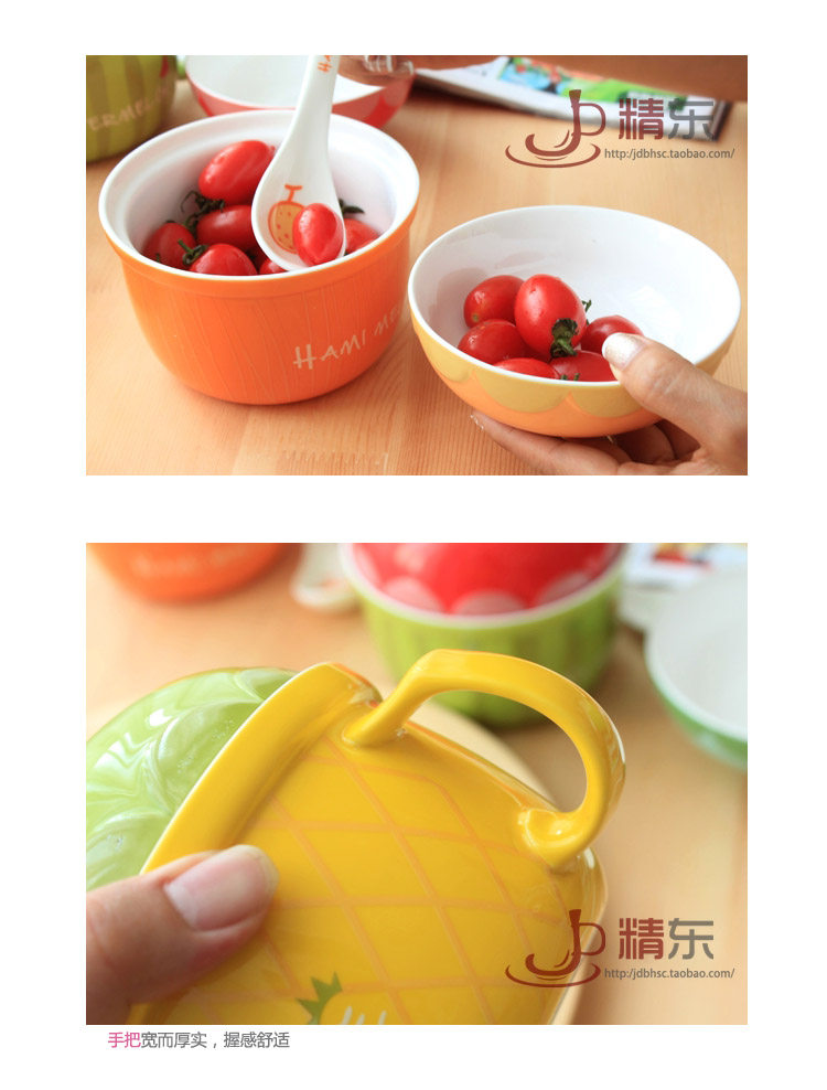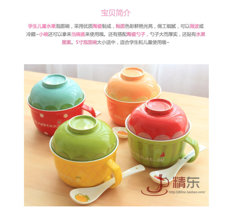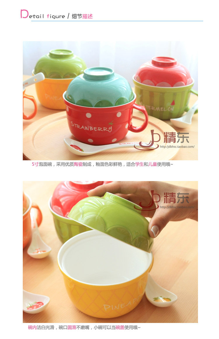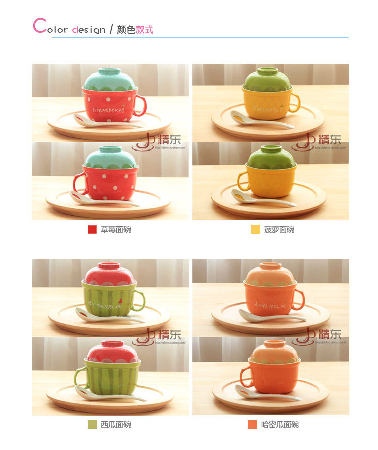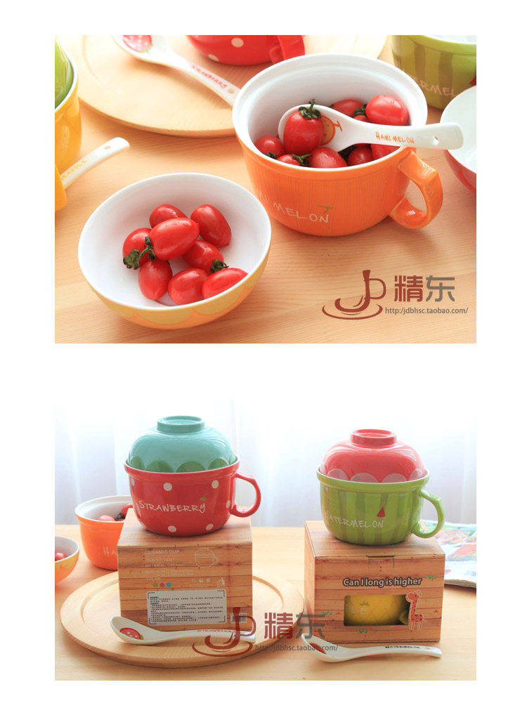 可爱水果陶瓷碗套装日式餐具带盖勺泡面碗儿童创意泡面杯饭碗汤碗