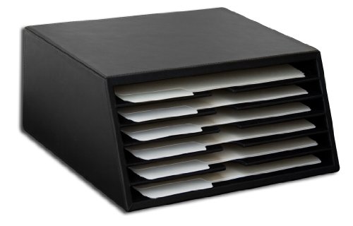 -. Title : Dacasso Black Leather 6-Tray File Sorter