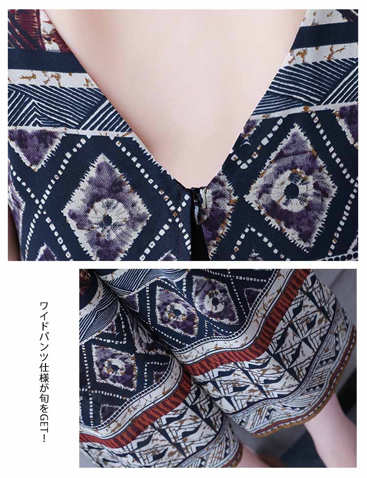 | アジアンテイスト満載のオールインワンエスニック柄が大人女性の魅力をより一層引き立ててくれますシワになりにくく、とろみのあるシフォン素材で仕立てた一枚が上品さ漂うサイズ展開はSから2Lまで揃えたので体型にあったものをお選び頂けるのも嬉しいサラリとした肌触りが優しく、涼しくてこの夏乗り切れそう | |