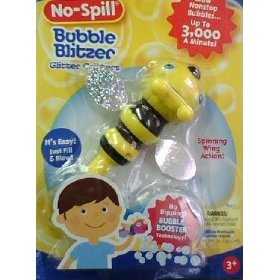 Simply blow into the Bubble Blitzer Glitter Critter and watch the glitter wings spin as bubbles fly into the air. Bubble Blitzer will blow up to 3,000 bubbles a minute. Premium bubble solution is included.