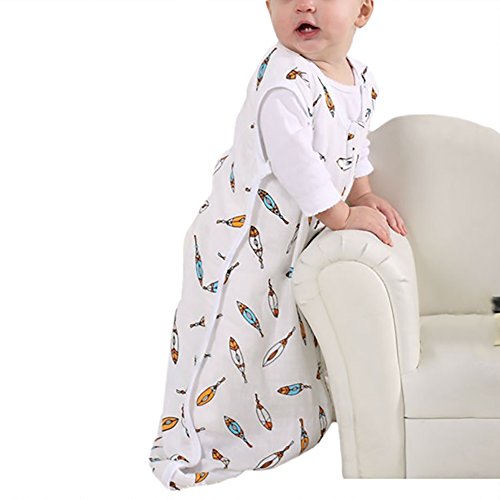 Feature : This wearable sleeping bag is a great replacement for babies that no longer want to be put in a swaddle. Avoid the need for loose blankets in the crib and create a safer environment for growing infants / The sleeping sack cannot be kicked off and will keep baby comfortable and not too restricted. The design ensures that there is enough room to allow baby to wiggle and crawl / This is a lightweight, SINGLE layer sleeveless sleeping sack so its perfect for the spring, summer and fall. Made from 100% muslin cotton, it is safe for infants and can be machine washed. The material is quite breathable, so baby won't get hot. This sleeping sack is also quite soft and in fact feels softer with every wash. This wearable sleeping bag meets all safety requirements / Enjoy nice extra touches such as extra fabric over zipper to protect baby's skin and bottom up zipper for easy diaper changes / CARE: Machine wash before first use. Machine wash with warm water and tumble dry low. Do not dry clean or iron
