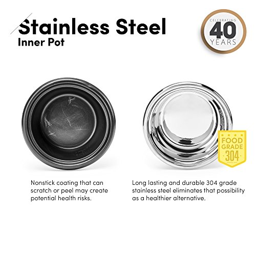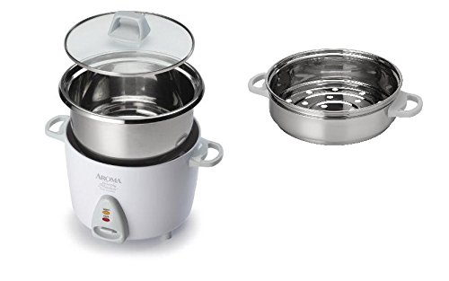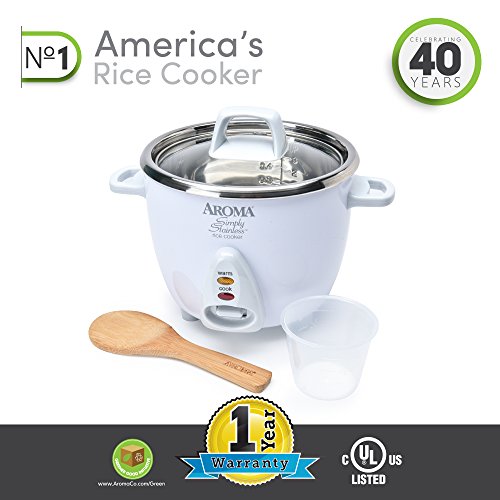 Enjoy easy home cooking with the Aroma Simply Stainless 6-Cup (Cooked) Rice Cooker. Restaurant-quality rice. Healthy steamed meals. Delicious one-pot dishes. Prepare all this and more at the flip of a switch! Aroma takes the "cook" out of home cooking - turning kitchen time into your time! Help the kids with homework, get creative at play time or pick up that novel you've been waiting to dive into. All while delivering hot, hearty and healthy meals the entire family will love. This convenient cooker's compact capacity perfectly cooks 2 to 6 cups of any variety of rice. Once the rice has finished, it will automatically switch to Keep-Warm so there's no need for monitoring or stirring. It's also perfect for oatmeal, chili, jambalaya, soups and so much more! The cooking pot is made completely of surgical-grade 304 stainless steel for worry-free cooking and superior results. And when the cooking is done, the inner cooking pot and all accessories remove for easy cleanup in the dishwasher. Rice Measuring Cup and Serving Spatula included. Steam Tray sold separately.Feature