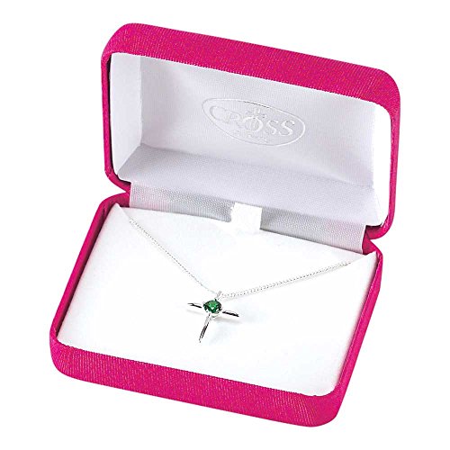 -. Title : May Emerald Birthstone Birthday Cross Silver Plated 18 inch Chain and Pendant Necklace