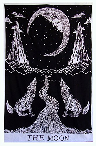 Crying Wolf of The Moon Tapestry wall hanging Bohemian Twin Bed Sheet Ethnic Wall Art by Third Eye Export