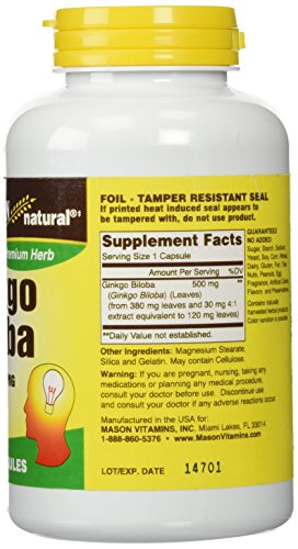 -. Title : Mason Vitamins Ginkgo Biloba Leaves Powder, 500 mg per Capsule, 180 Gelatin Capsules