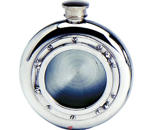 -. Title : 6oz Liquor Hip Flask Round with Clear Glass Ship s Porthole Insert