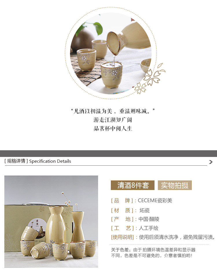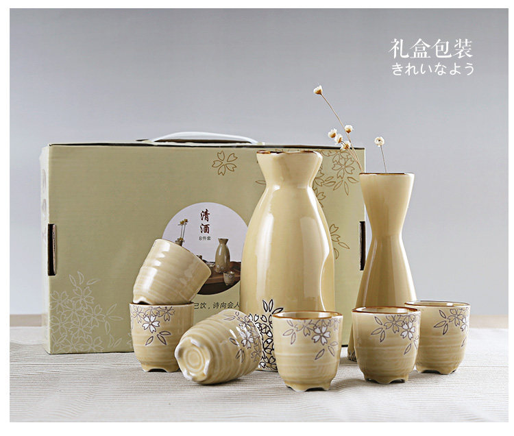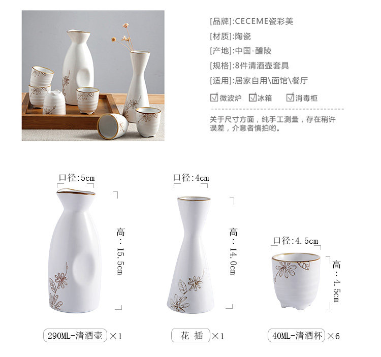 8件日式清酒具套装个性陶瓷清酒壶创意清酒杯套装家用白酒杯套具