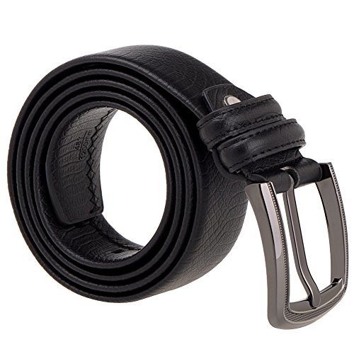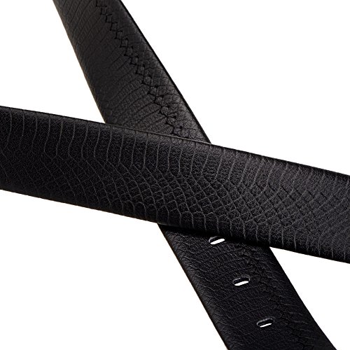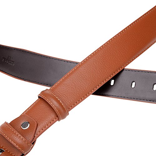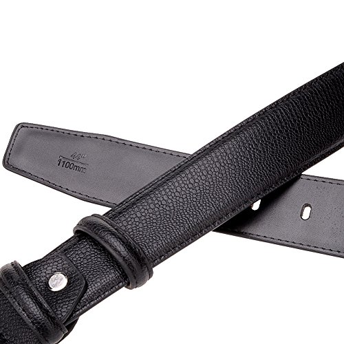 - Feature : 35MM belt strp / Cow split leather fabric / Single prong belt buckle going through plating process / Double stitching and paint edge / Length of belt is from 110cm to 120cm (44"-48"). Easy to adjust its length from the buckle end.