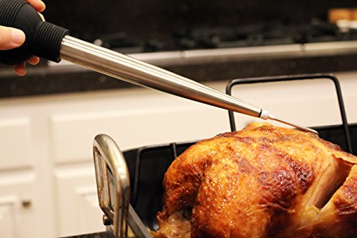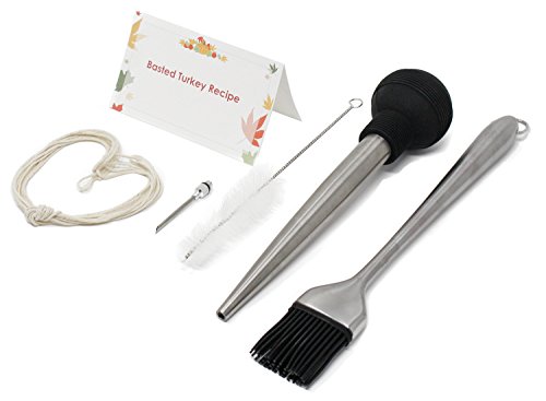 Studio : URSWELL Publisher : URSWELL Product Description The perfect accessory to help you complete your next masterpiece. This stainless steel baster comes complete with a heat resistant bulb to keep your hands safe and give you all the suction you need for collecting run off juices from your turkey, chicken, pork, beef, or fish and redistributing them across your meat. Our long basting brush allows you to reach every part of the meat with the sauce of your choice and since the brushes are made of silicon they ensure an easy clean. To complete your flavor fest we've included an injector attachment that allows you to keep your meat moist throughout for maximum flavor. When you're all done, cleanup is a breeze. Simply use the included tube brush for an quick and easy cleaning that'll keep this baster ready to go for years to come. In addition to everything else we've included two added bonuses! We've provided our favorite Basted Turkey Recipe on a actual recipe card! and so you don't have to run out at the last minute trying to find cooking twine we included 120 inches (why buy a whole roll? ) It is enough to make a homemade turkey lifter with plenty left over to dress your turkey. We've even included a helpful "how to" card for making the turkey lifter with the twine. Enjoy! Kit includes: (1) Stainless steel baster with heat resistant bulb (1)12" stainless steel silicon basting brush (1) Screw on injector attachment (1) Baster cleaning tube brush (1) Basted Turkey Recipe (1) 120" bundle of cooking twine with "How to" instructions for making a turkey lifter with the twine. (Oven use only)