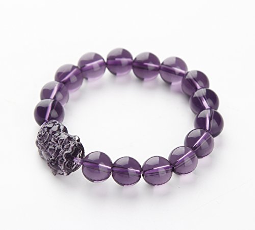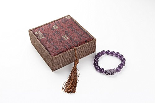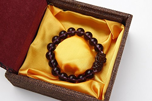 Feng Shui Amethyst Wealth Porsperity Bracelet 12mm Bead with Pi Xiu / Pi Yao, Attract Wealth and Good Luck, Deluxe Gift Box Included