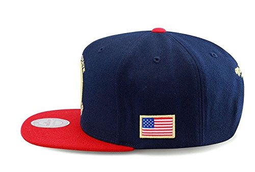 -. Brand : Mitchell & Ness -. Color : Navy -. Department : unisex-adult -. Feature : Officially licensed NBA product / 100% Wool - Hi structured crown / Flat brim with gold under visor / High quality embroidered logo at front and flag patch at side / Contrast red crown button and red plastic adjustable snapback -. PackageQuantity : 1 -. ProductGroup : Apparel -. ProductTypeName : APPAREL -. Size : o/s -. Title : Mitchell & Ness NBA USA Flag Two Tone Hi Crown Adjustable Snapback In Navy/Red