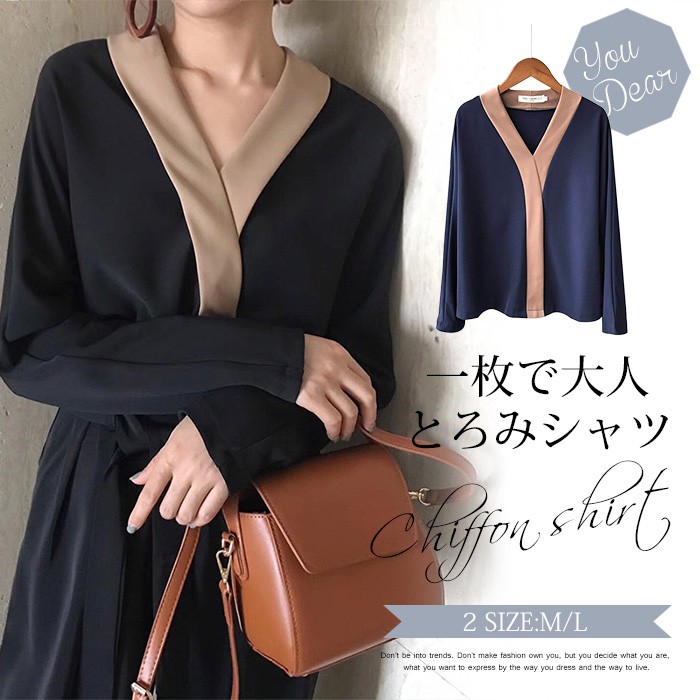 ■快適な着心地を実現したブラウス、一枚でサマーになり、スーツやジャケットのインナー使いとしても大活躍!■何にでも合わせやすく、着回しやすいブラウスです!■柔らかで肌を包み込むようなシフォン素材なので着心地最高!■使用シーン等:普段使い 通学 通勤 OL ビジネス 入園式 入学式 ママ 卒園式 20代 30代 40代 50代★素材:ポリエステル ★生地の厚さ:普通 ★生産国:中国★カラー:黒、紺色 (写真参考)※お客様ご使用のPC環境により商品画像のカラーが多少異なる場合があります。仕入時期により多少デザインなど異なる場合があります。ご了承ください。★サイズ(CM):M:バスト104 着丈54 肩袖丈63L:バスト108 着丈55 肩袖丈64※サイズは人の手によって測っているため、1-3cmの誤差がある場合がございます。予めご了承下さいませ。