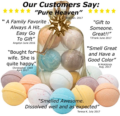 - VALENTINES GIFT SET– Elegant Packaging Makes These Gifts For Women Or Men Stand Out. Each Individually Wrapped Bath Bomb Comes In An Elegant Organza Bag, Inside Of A Metallic Envelope, Sealed In With Gold. Stylish Addition To Gift Baskets For Women. Sexy Gifts For Women & Unique Gifts Bags. A High Quality, Natural Bath Bomb Kit Always A Welcome Gift: Birthdays, Anniversary Gifts, Christmas. Perfect Holiday Gift Set. Can’t Go Wrong. Love To Relax In Fizzy Moisturizing Bath Bath Bombs.