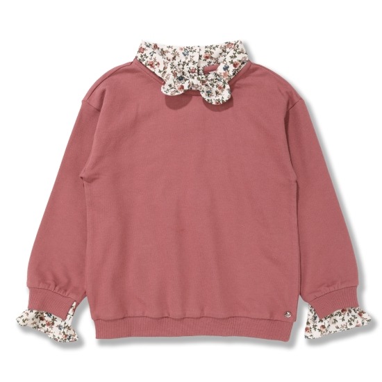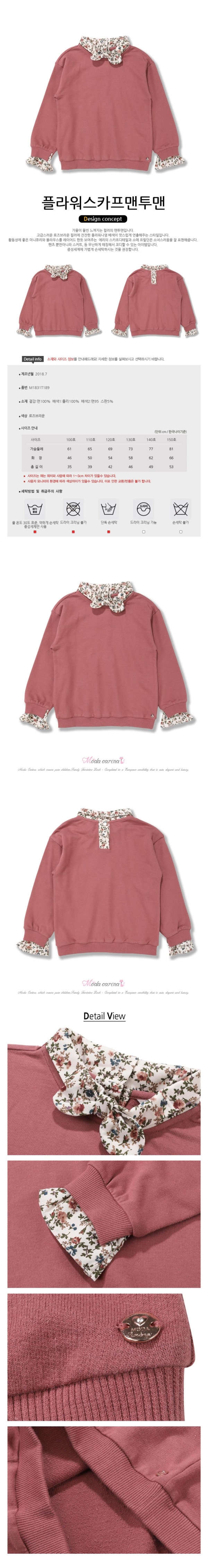 목라인에 마치 스카프를 두른듯한 손목에도 꽃모양의 프릴을 달아 맨투맨이 더욱 돋보이는 맨투맨입니다.아무옷이나 코디하기좋은 맨투맨입니다.