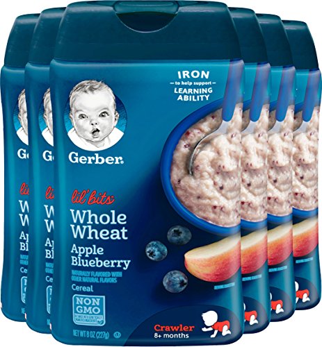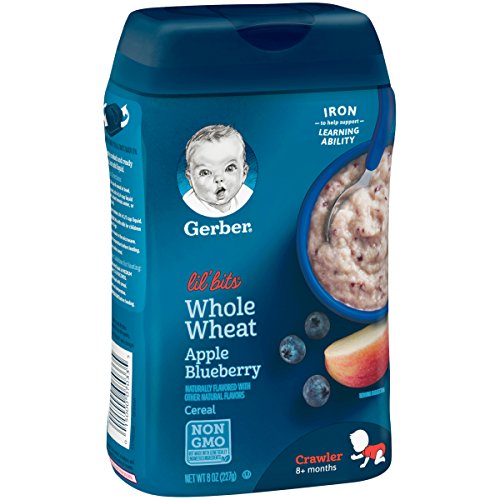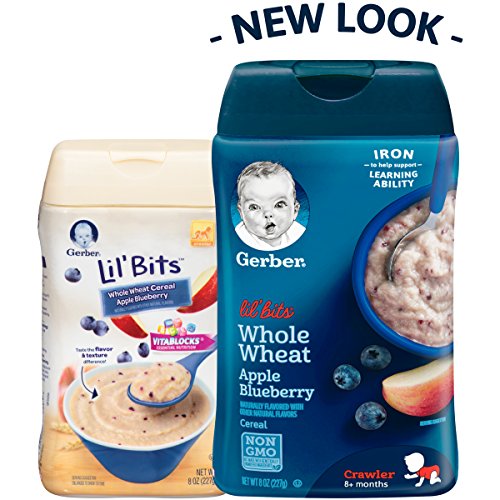 -. Binding : Grocery -. Brand : Gerber Graduates -. EAN : 0015000070342 -. Feature : (Packaging May Vary) Pack of six (6) 8 oz containers, about 15 servings per container / Has iron to help support learning ability / Made with real fruit & whole grains / Non-GMO: not made with genetically engineered ingredients / Head to MyGerber.com to meet Dotti, your on-call personal baby expert, or call us anytime 24/7 at 1-800-284-9488 -. Label : Nestle Nutrition -. Manufacturer : Nestle Nutrition -. MPN : 00015000070342U -. NumberOfItems : 6 -. PackageQuantity : 6 -. PartNumber : 00015000070342U -. ProductGroup : Grocery -. ProductTypeName : GROCERY -. Publisher : Nestle Nutrition -. ReleaseDate : 2015-05-18 -. Studio : Nestle Nutrition -. Title : Gerber Lil Bits Whole Wheat Apple Blueberry Baby Cereal, 8 Ounce (Pack of 6) -. UPC : 015000070342